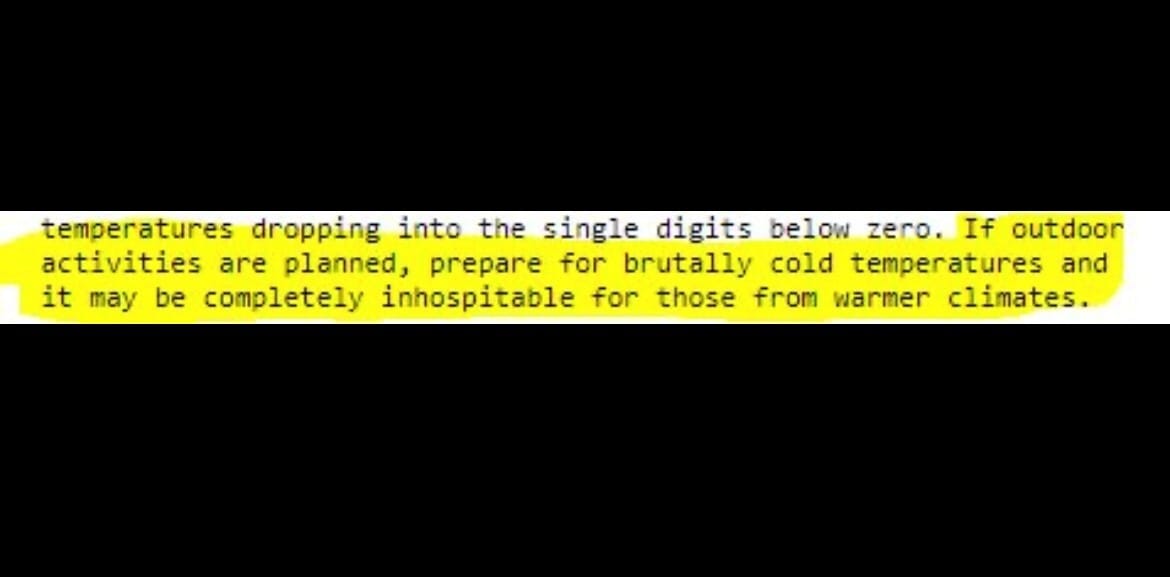 “MAY BE COMPLETELY INHOSPITABLE TO THOSE FROM WARMER CLIMATES”